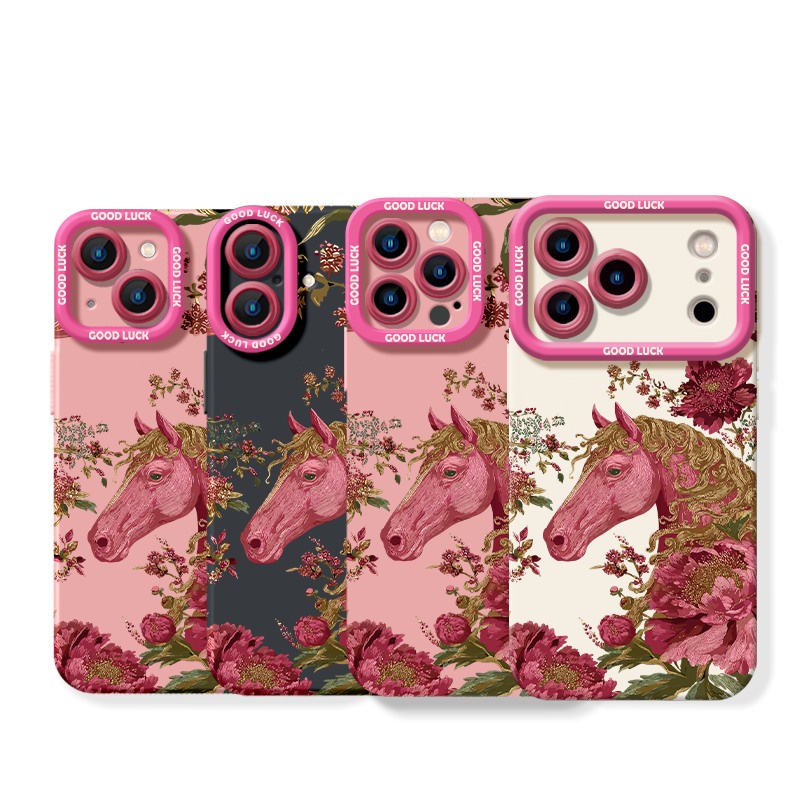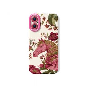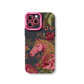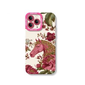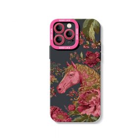 Elegant Horse & Floral Pattern Silicone Case for Apple iPhone Series