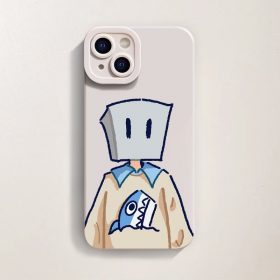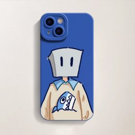 Premium printed iPhone case with a stylish design: Quirky Box Head & Shark Graphic Silicone Case for Apple iPhone Series