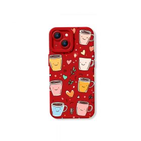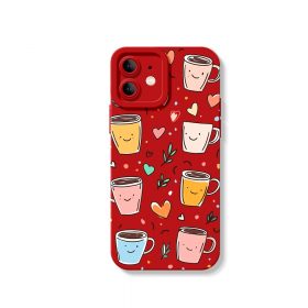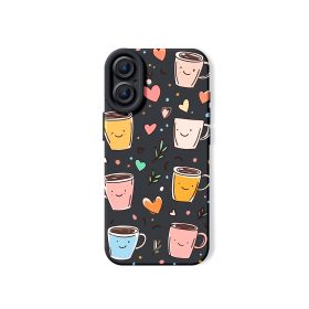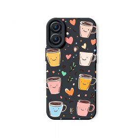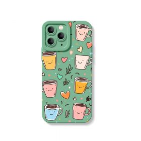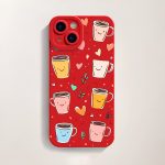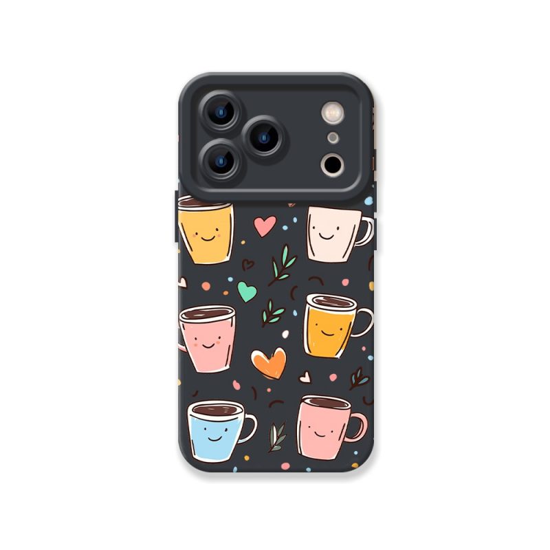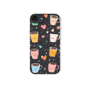 Smiley Coffee Cups Hearts Silicone Case for Apple iPhone Series