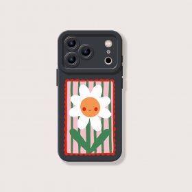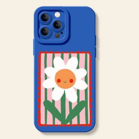 Smiling Daisy on Stripes Silicone Case for Apple iPhone Series