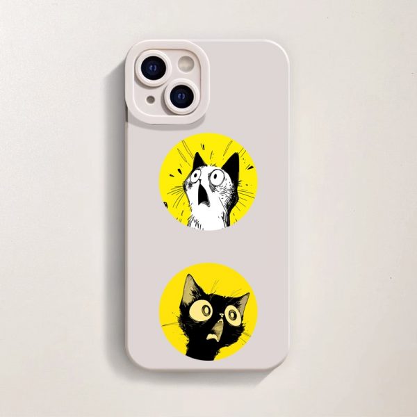 Surprised Cats in Yellow Circles Silicone Case for Apple iPhone Series