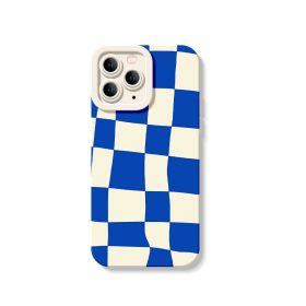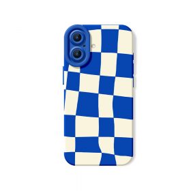 Vibrant Blue Checkerboard Silicone Case for Apple iPhone Series